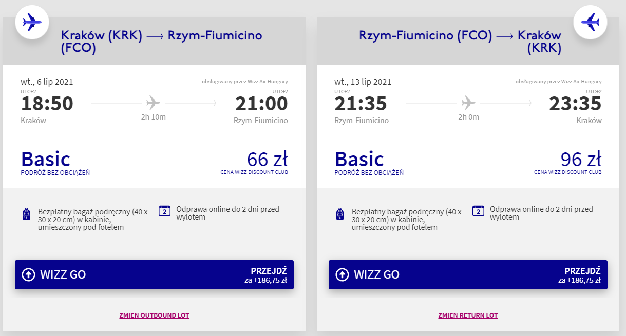 Do Włoch polecicie na pokładzie samolotów linii lotniczej Wizz Air z Krakowa, w wakacyjnym terminie 6 – 13 lipca. Pamiętajcie, że najtaniej bilety kupią członkowie Wizz Discount Club. Bez dodatkowych kosztów na urlop udacie się wyłącznie z bagażem podręcznym. Przed podróżą warto przeczytać nasz poradnik, jak się spakować.