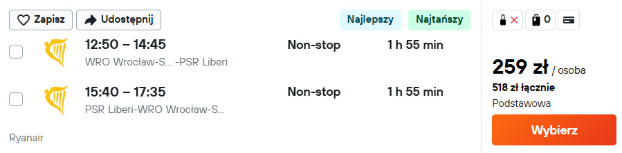 Do Pescary wylecisz w piątek (6 czerwca) z Wrocławia o godzinie 12:50. W drogę powrotną wyruszysz w niedzielę (8 czerwca), a odlot zaplanowany jest na godzinę 15:40. Podróżować będziesz linią Ryanair z bagażem podręcznym.