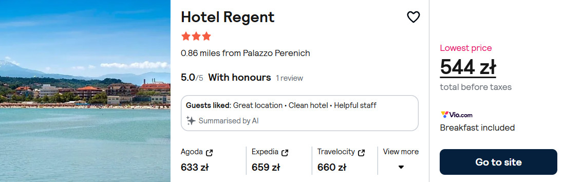 Zatrzymasz się w hotelu Regent w Pescarze – idealne miejsce przy plaży, blisko centrum, wygodne pokoje i dobre śniadania. Świetna opcja na krótki, spokojny pobyt.