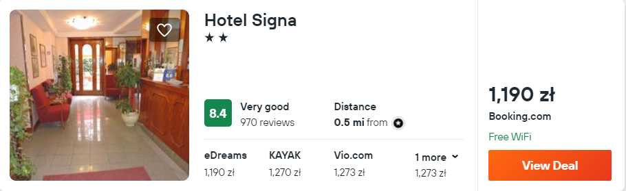 Na miejscu zatrzymasz się w hotelu Signa, który znajduje się w sąsiedztwie stadionu Santa Giuliana oraz parku Sant’Anna. Z lotniska w okolice miejsca noclegowego (przystanek Viale Roma) dojedziesz autobusem lub wypożyczonym samochodem – szczegóły poniżej.