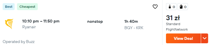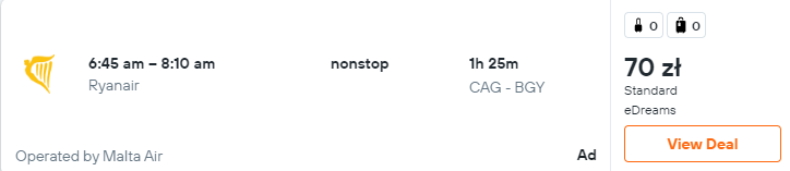 Podróżować będziecie na pokładach samolotów linii lotniczych Ryanair. Pamiętajcie też, że bez dodatkowych opłat możecie zabrać jedynie bagaż podręczny.