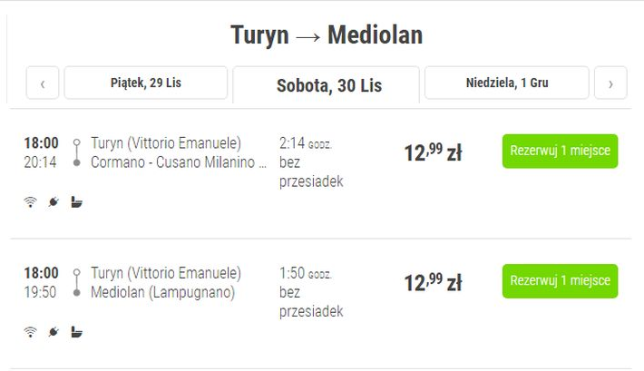 W pierwszym etapie podróży polecicie 27 listopada do Turynu linią Wizz Air. W stolicy Piemontu możecie się spodziewać licznych atrakcji, unikalnej architektury, czy szalonego życia nocnego. Z Turynu do Mediolanu dostaniecie się 30 listopada przewoźnikiem Flixbus. Dostępnych jest kilkanaście kursów dziennie. Światowa stolica mody i designu przypadnie wa do gustu ze względu na niezliczone zabytki na czele z monumentalną Katedrą Narodzin św. Marii i Placem Duomo. Z Mediolanu (Bergamo) wrócicie do Krakowa 3 grudnia na pokładzie linii Ryanair. Pamiętajcie, że w najniższej cenie polecicie tylko z małym bagażem podręcznym.