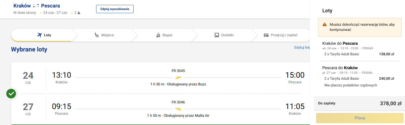 Nad włoskie wybrzeże Adriatyku polecisz bezpośrednio z Krakowa linią Ryanair.