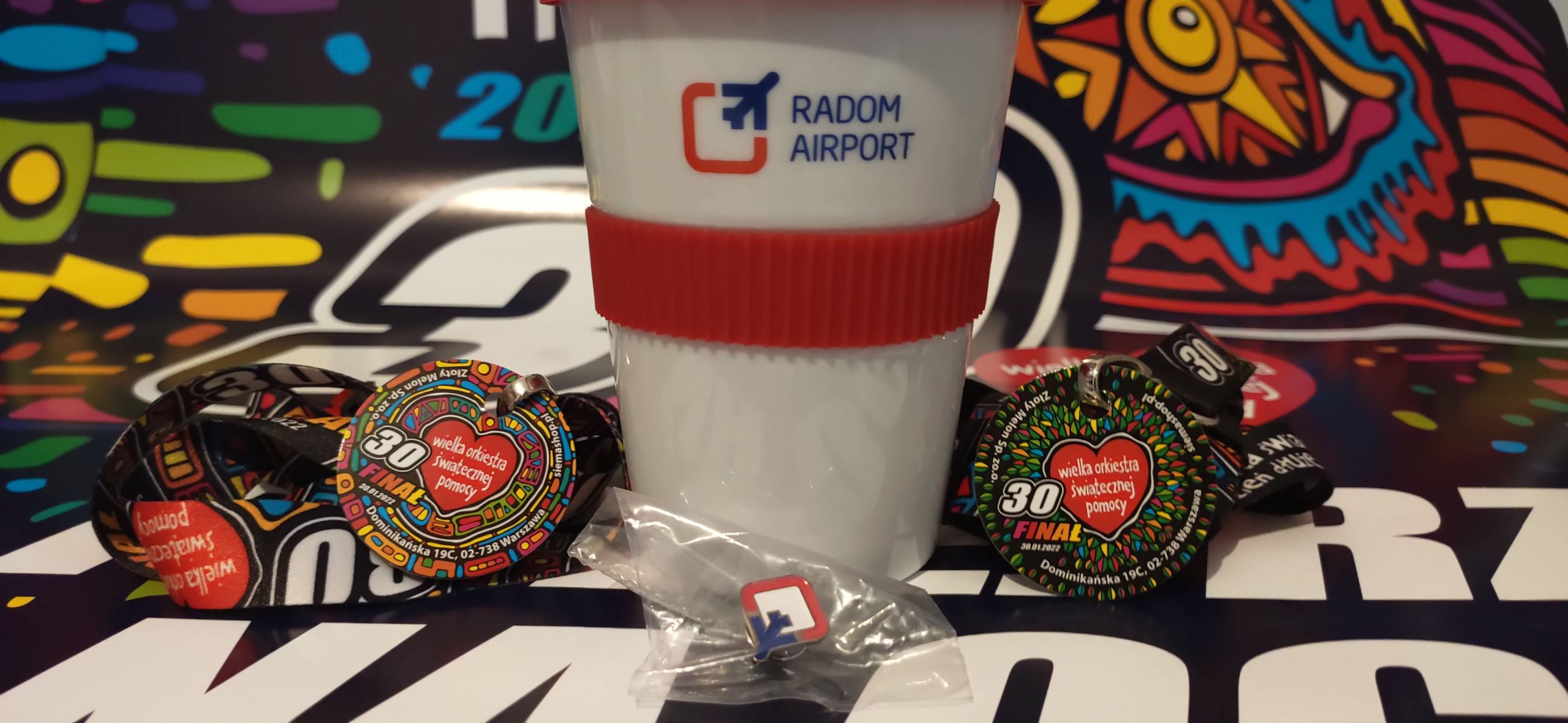 Licytuj unikatowe gadżety dawnego Portu Lotniczego w Radomiu. Znajdziecie w nich kubek do kawy lub herbaty oraz przypinkę. Dodatkowo do zestawu dołączone są dwie smycze do kluczy 30. Finału Wielkiej Orkiestry Świątecznej Pomocy.