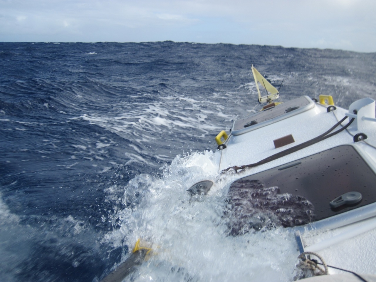 Silne fale wywróciły dwukrotnie mój kajak, wypadłem z niego, potem wypchnęło mnie na plażę Sandy Hook, zniszczeniu uległy systemy łączności i instalacja elektryczna, wszystko było zalane. Myślałem, że po naprawie elementów i wysuszeniu wszystkiego, uda się ponownie wystartować. Niestety, woda oceaniczna ma bardzo dużo soli, uszkodzenia były za duże. Koniec.