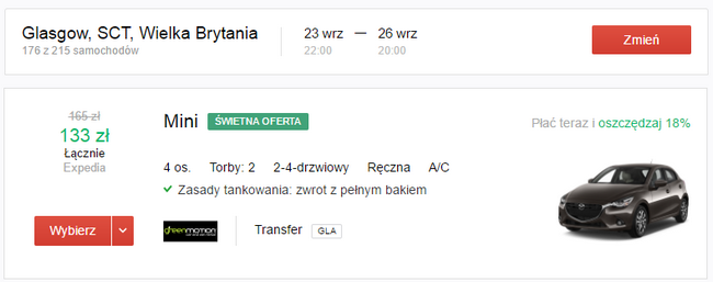 Wybierz się do Szkocji – loty do Glasgow z Gdańska od 78 PLN. Auto od 44 PLN/doba