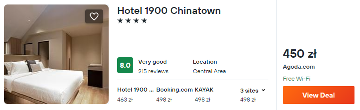 Aklimatyzację w Singapurze rozpocznij od pobytu w 4* hotelu 1900 Chinatown. Obiekt oferuje dobry stosunek ceny do jakości.