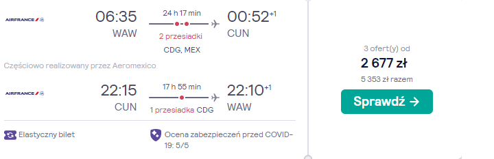 Na wycieczkę do Meksyku wybierzecie się w terminie 27 stycznia – 7 lutego. Czeka was podróż z warszawskiego lotniska im. Fryderyka Chopina, realizowana na pokładzie samolotów linii lotniczej Air France. Po drodze zaplanowano bezpieczne, gwarantowane przez przewoźnika przesiadki w Paryżu oraz mieście Meksyk.