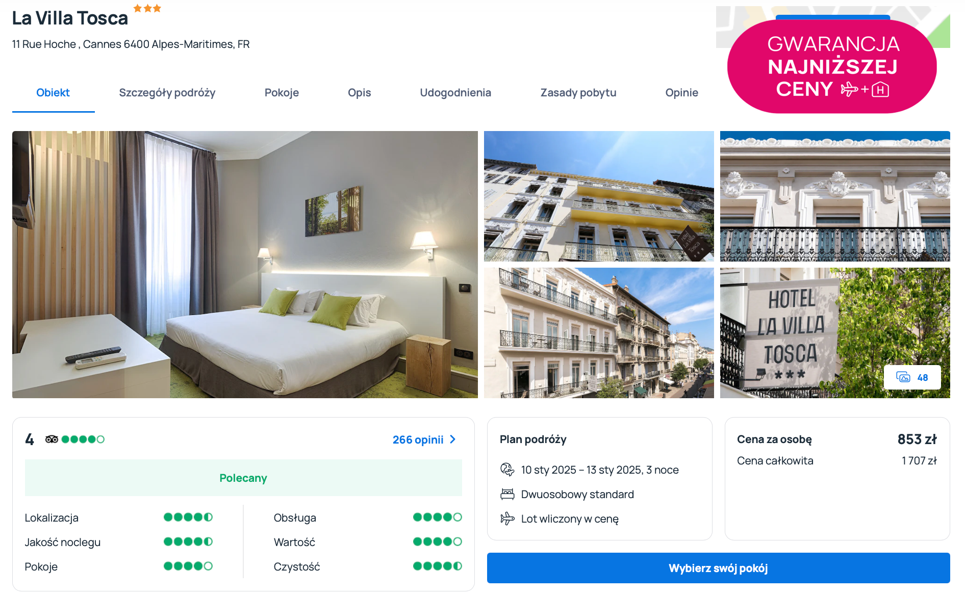 Na Lazurowym Wybrzeżu zatrzymaj się w bardzo dobrym 3* hotelu La Villa Tosca, który położony jest 500 metrów od dworca kolejowego w Cannes i 350 metrów od Le Palais des Festivals.