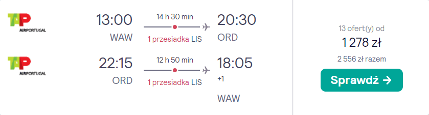 Do Stanów Zjednoczonych udacie się w terminie 13-20 lutego z warszawskiego lotniska im. Chopina. W obie strony polecicie na pokładach samolotów linii lotniczej TAP Air Portugal z wygodnymi przesiadkami na lotnisku w Lizbonie. W cenie biletu zabrać będziecie mogli zabrać ze sobą bagaż podręczny oraz jeden przedmiot osobisty (mały plecak lub damską torebkę).