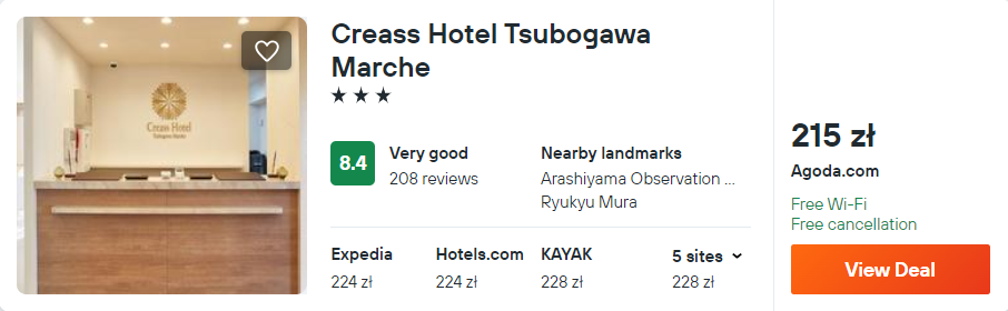 Wyprawa do Japonii składa się z trzech niezależnych rezerwacji biletów lotniczych (Budapeszt-Tokio i Osaka-Budapeszt, Tokio-Okinawa oraz Okinawa-Osaka). Jak widzisz, wyjazd rozpoczniesz i zakończysz w porcie lotniczym im. Ferenca Liszta w Budapeszcie.