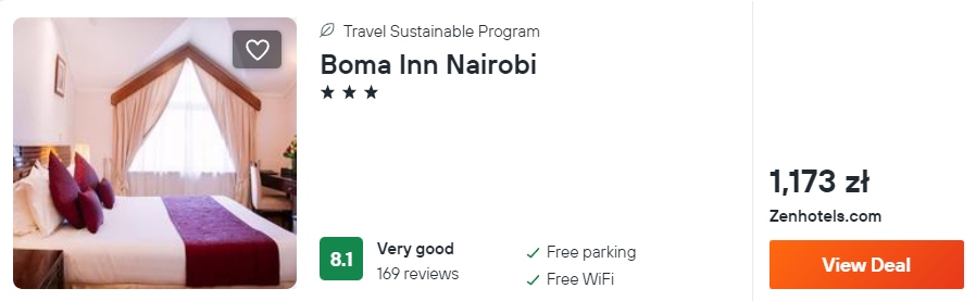 W Nairobi zatrzymaj się w bardzo dobrze ocenianym 3* hotelu Boma Inn. Obiekt zlokalizowany jest blisko parku narodowego i będzie doskonałą bazą wypadową do twoich wycieczek.