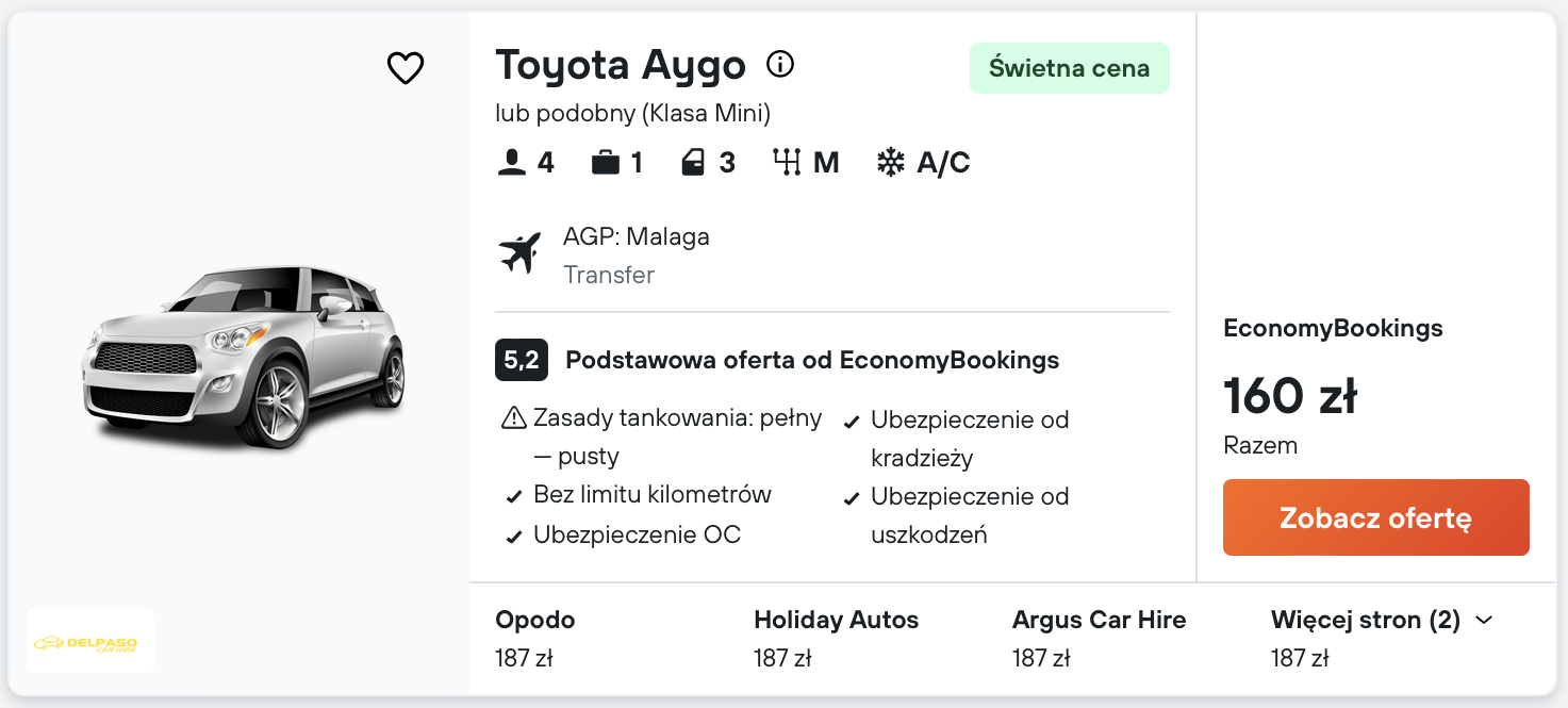 Aby zobaczyć wszystkie atrakcje w Andaluzji, wypożycz samochód już na lotnisku w Maladze.