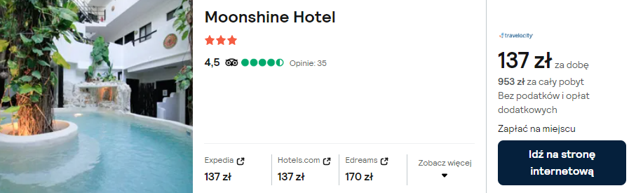 Wybrałem zakwaterowanie w pobliskim Playa del Carmen. Zatrzymasz się tam w położonym niedaleko plaży 3* hotelu Moonshine.