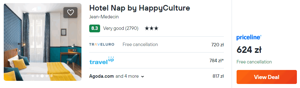 W Nicei proponuję ci noclegi w 3* hotelu Nap By HappyCulture. Każdy pokój wyposażony został w klimatyzacje, telewizor LCD oraz czajnik elektryczny. W łazience jest prysznic, suszarka do włosów i podstawowe przybory toaletowe. Na terenie całego obiektu będziesz miał zapewniony dostęp do sieci WiFi.