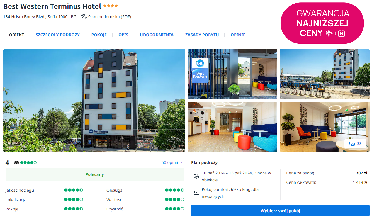 Zatrzymasz się w bardzo dobrze ocenianym 4* hotelu Best Western Terminus. Do twojej dyspozycji będą przestronne wnętrza, współcześnie urządzone pokoje oraz eleganckie lobby. Będzie to doskonała baza wypadowa do zwiedzania atrakcji bułgarskiej stolicy.