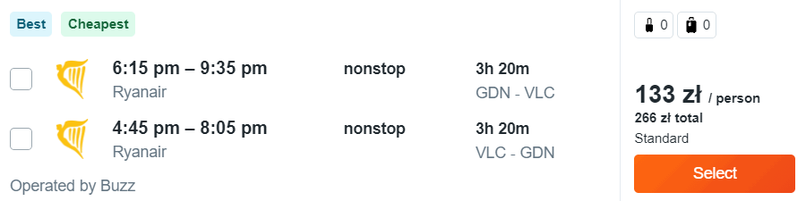 W podróż do Walencji udacie się w terminie obejmującym ostatni weekend listopada (23-27.11). Na hiszpańskie wybrzeże Morza Śródziemnego wybierzecie się z portu lotniczego im. Lecha Wałęsy (z Gdańska), a za bilet zapłacicie tylko 133 PLN/os. W obie strony polecicie na pokładach samolotów linii Ryanair z wliczonym małym bagażem podręcznym.