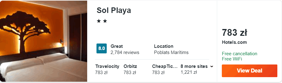 Na miejscu zakwaterowani będziecie w hotelu Sol Playa, który znajduje się tuż przy piaszczystej plaży Cabanyal oraz w sąsiedztwie portu. Z lotniska w Walencji w okolice miejsca noclegowego dojedziecie komunikacją publiczną za ok. 7 PLN.