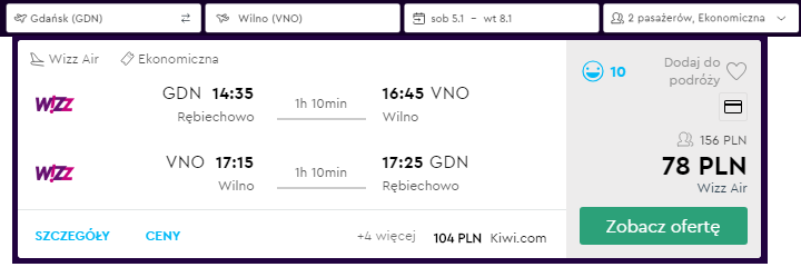 Loty z Gdańska do Wilna (5-8 stycznia) za 156 PLN / 2 osoby (78 PLN / osoba)