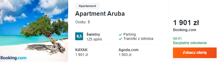 8-dniowa wycieczka na Arubę kosztować was będzie 3735 PLN za osobę , przy 2 podróżnych śpiących w jednym pokoju.