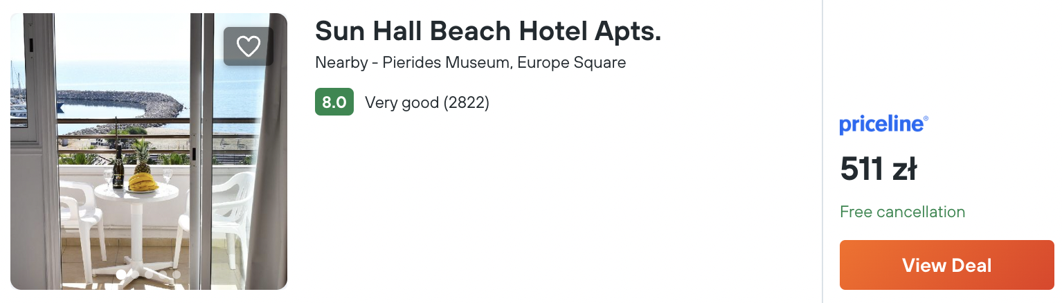 Na Wyspie Afrodyty polecam noclegi w hotelu Sun Hall Beach, który znajduje się bezpośrednio przy wybrzeżu. Z lotniska w okolice miejsca zakwaterowania dojedziesz komunikacją publiczną lub wypożyczonym samochodem.
