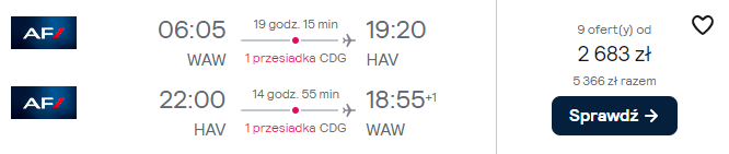 Na Karaiby wybierzesz się w terminie 3 – 10(11) czerwca. Czeka cię podróż linią Air France z Warszawy do Hawany. Po drodze przesiądziesz się w Paryżu.