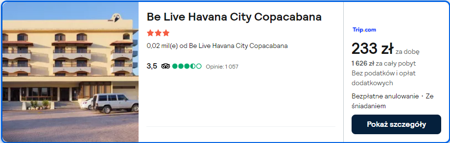 Wybrałem zakwaterowanie w hotelu Be Live. To hotel, który będzie świetną bazą wypadową do zwiedzania Hawany. Dla gości przygotowano m.in. możliwość skorzystania z basenu.