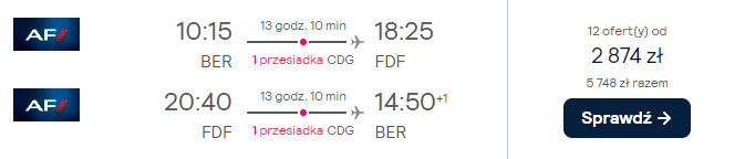Na Karaiby udasz się w terminie 4 – 12 grudnia. Czekają cię loty z Berlina, realizowane na pokładzie samolotów linii lotniczej Air France. Po drodze zaplanowano bezpieczne, gwarantowane przez przewoźnika przesiadki w Paryżu.