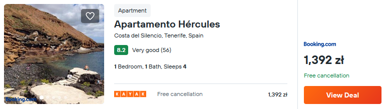 Na Teneryfie polecam noclegi w apartamencie Hercules, który oferuje aneks kuchenny z ekspresem do kawy, WiFi, balkon i prywatną łazienkę.