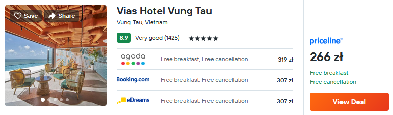 Wybierasz się do Vung Tau? W takim razie rozważ pobyt w 5* hotelu Vias z wliczonymi śniadaniami. Obiekt zlokalizowany jest bezpośrednio przy wybrzeżu i rozpościerają się z niego malownicze krajobrazy.