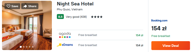 Na Phu Quoc rekomenduję 4* hotel Night Sea. Będzie to świetna baza wypadowa do zwiedzania okolicy. W cenę pobytu wliczone są śniadania.