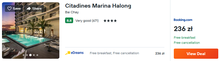 Natomiast nad zatoką Ha Long dobrym wyborem będzie 4* Citadines Marina. Na miejscu znajduje się basen i taras słoneczny.