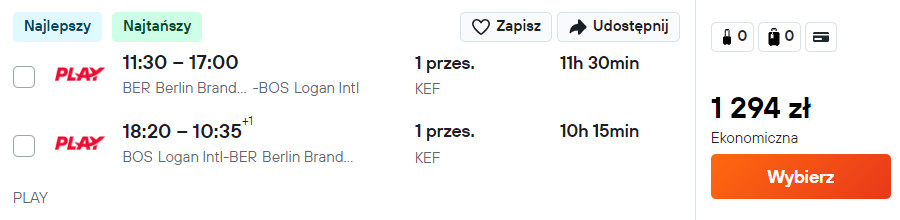 Do USA udasz się z Berlina w terminie 14-20 listopada. W obie strony polecisz linią Play przesiadką w Reykjavíku. W cenie zabrać ze sobą możesz bagaż podręczny.