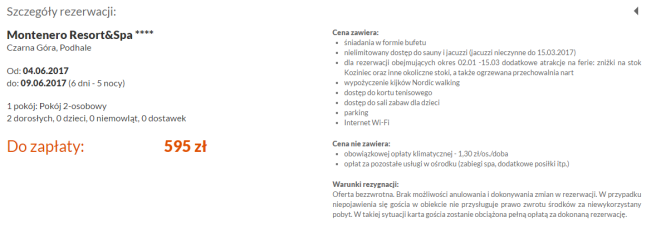 Przykładowe rezerwacje na 6 dni (5 nocy) dla 2 osób: