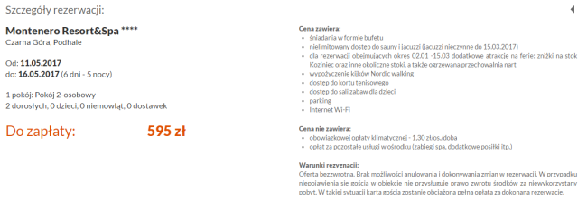 Oferta zawiera śniadania w formie bufetu, nielimitowany dostęp do sauny i jacuzzi, wypożyczenie kijków Nordic walking, dostęp do kortu tenisowego, dostęp do sali zabaw dla dzieci, parking, internet Wi-Fi.