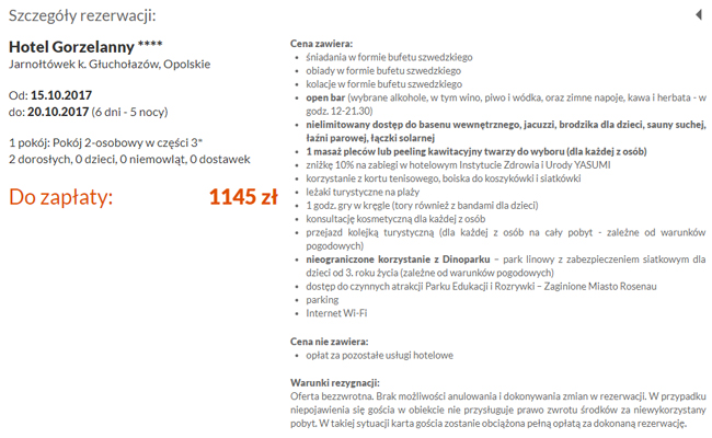 Przykładowa rezerwacja (5 nocy):