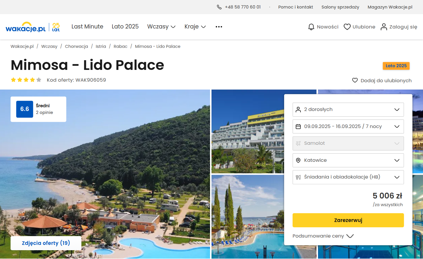 Podczas pobytu zatrzymasz się w 4* hotelu Mimosa – Lido Palace w nadmorskim Rabacu. Obiekt cieszy się dobrymi opiniami za lokalizację blisko plaży oraz rozbudowaną infrastrukturę rekreacyjną. Goście szczególnie chwalą baseny – zarówno kryty jak i odkryty, centrum spa oraz dostęp do sportów wodnych. Na terenie hotelu znajdziesz również siłownię, korty tenisowe i pole do minigolfa.