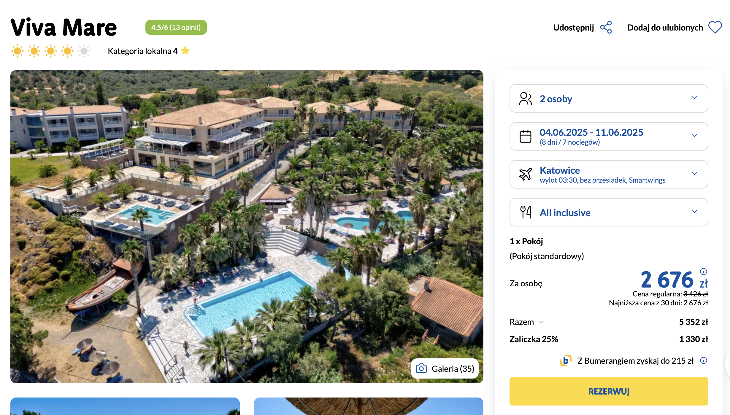 W cenie otrzymujesz przeloty, transfery lotniskowe, zakwaterowanie w 4* hotelu z wyżywieniem all inclusive oraz opiekę polskiego rezydenta. Pamiętaj, że na miejscu obowiązuje lokalny podatek turystyczny w wysokości 10 EUR za pokój za dzień, płatny bezpośrednio w recepcji.