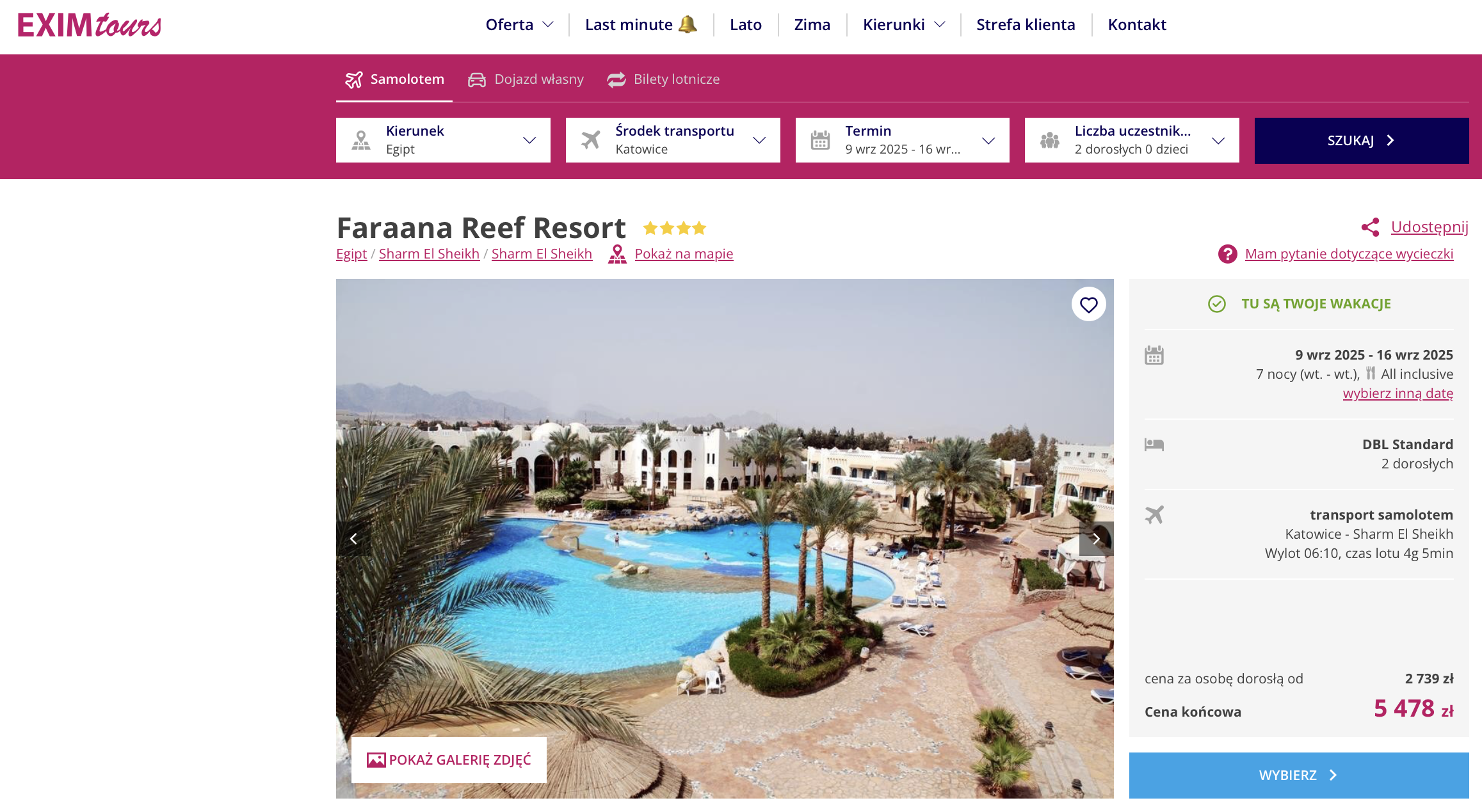 Wylot zaplanowano z Katowic na 9 września z powrotem 16 września. Do Szarm el-Szejk polecisz bezpośrednio z Polski.