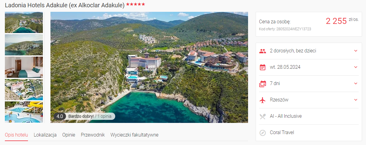 W cenie zapewnione są przeloty, transfery lotniskowe, podstawowe ubezpieczenie, all inclusive oraz opieka rezydenta.