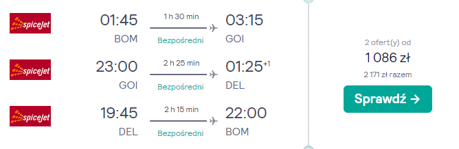 Podróżować będziecie na pokładach samolotów PLL LOT i SpiceJet. Pamiętajcie też, że bez dodatkowych opłat możecie zabrać jedynie bagaż podręczny.