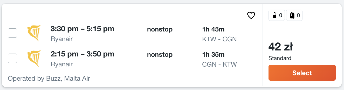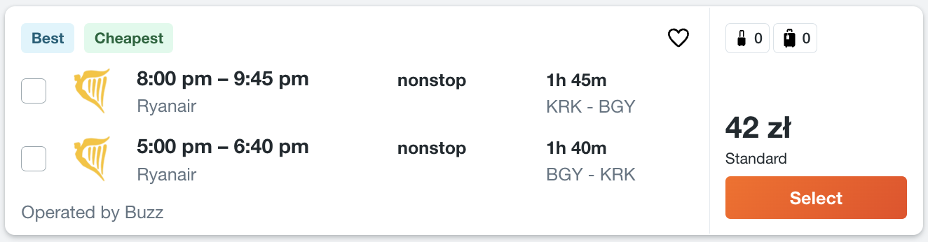 Na wycieczkę polecicie na pokładzie samolotów linii lotniczej Ryanair z Krakowa, Warszawy (Modlin), Gdańska, Poznania i Katowic. Możecie udać się do Bergamo, Wiednia, Olsztyna, Helsinek, Koszyc, Kowna, Rygi, Billund, Brukseli i Kolonii.