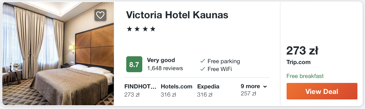 Natomiast w Kownie rekomenduję noclegi w 4* Victoria Hotel Kaunas, który znajduje się blisko centrum miasta.
