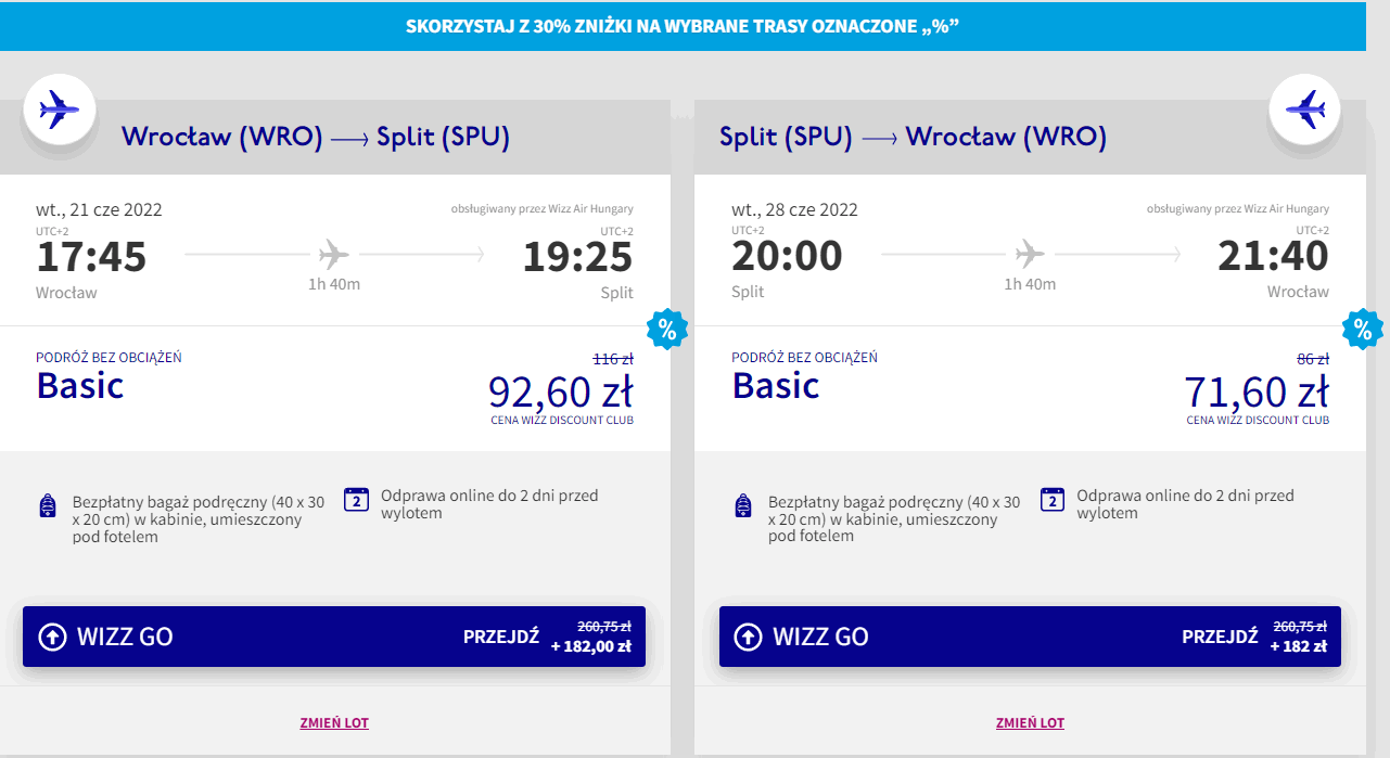 Rabatem w wysokości 30 proc. objęte są wybrane trasy z siatki przewoźnika na przeloty z Gdańska, Katowic, Krakowa, Lublina, Olsztyna, Poznania, Rzeszowa, Szczecina, Warszawy i Wrocławia. Bez dodatkowych kosztów na wycieczkę udacie się z małym bagażem podręcznym. Pamiętajcie, że obniżka dotyczy ceny podstawowej, a nie podatków i opłat.