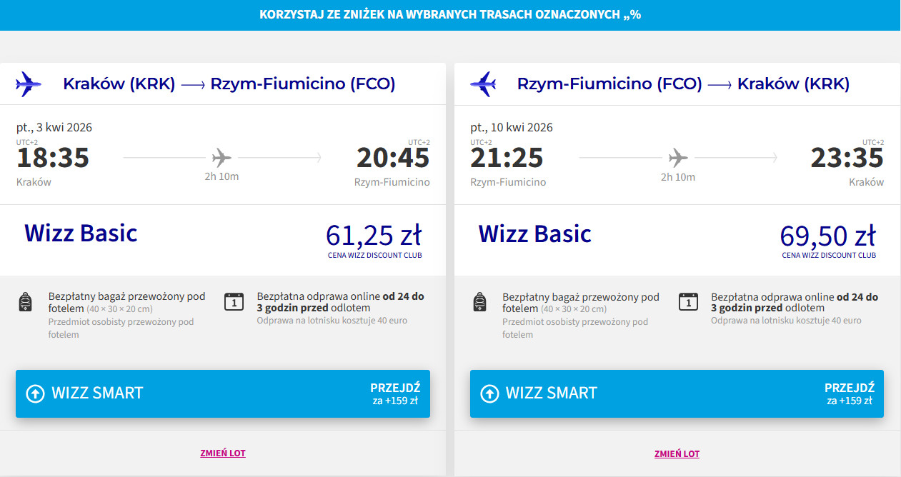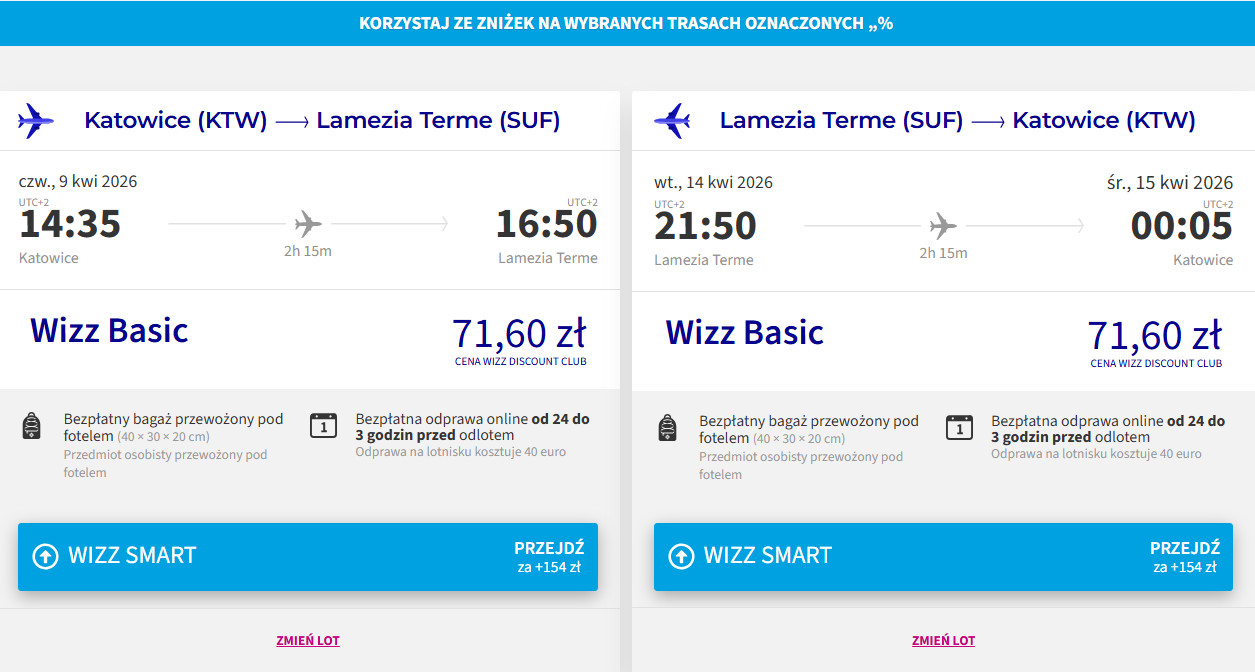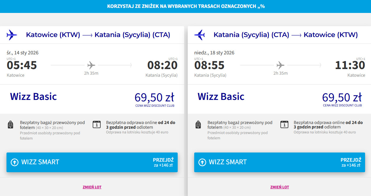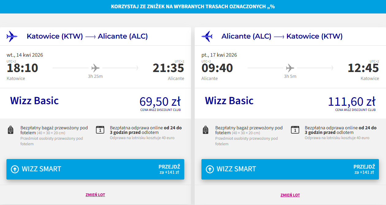 ✈️ Linia lotnicza: Wizz Air, cena dla osób z WDC