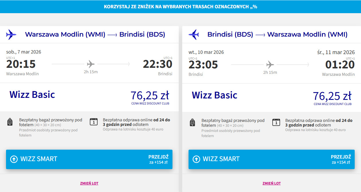 Warszawa Modlin – Brindisi – Warszawa Modlin »