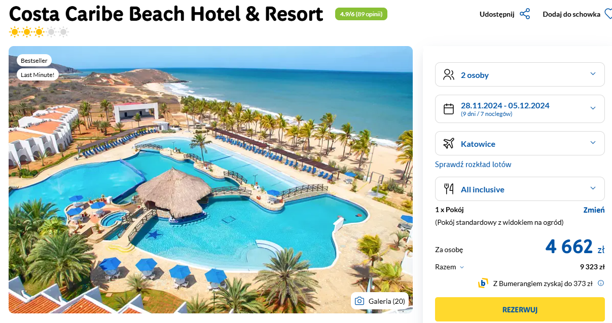 Spędzisz tydzień w położonym tuż przy plaży 3* Costa Caribe Beach hotel & Resort. Obiekt oferuje kilka basenów, taras słoneczny, serwis plażowy oraz komfortowe zakwaterowanie.