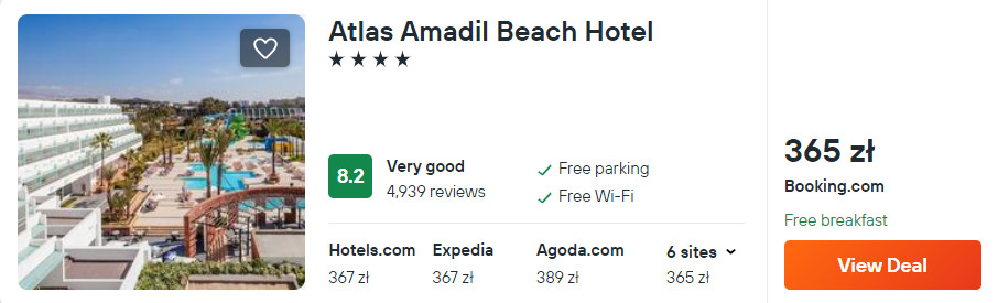 W Agadirze postaw na pobyt w 4* hotelu Atlas Amadil Beach, który mieści się tuż przy plaży. Na terenie obiektu znajdują się aż trzy odkryte baseny, w tym jeden ze zjeżdżalniami. W cenie zapewnione będziesz mieć codzienne śniadania oraz dostęp do sieci WiFi.