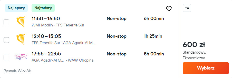 Warszawa Modlin – Teneryfa Południe – Agadir – Warszawa »