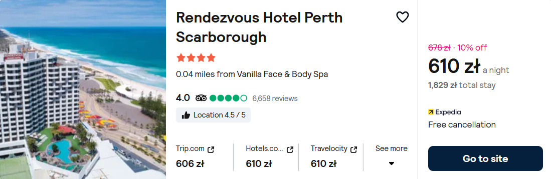 Możesz także zatrzymać się w 4* hotelu Rendezvous Hotel Perth Scarborough, który położony jest nad brzegiem Oceanu Indyjskiego. Najbliższa plaż od obiektu znajduje się w odległości niespełna 50 metrów.